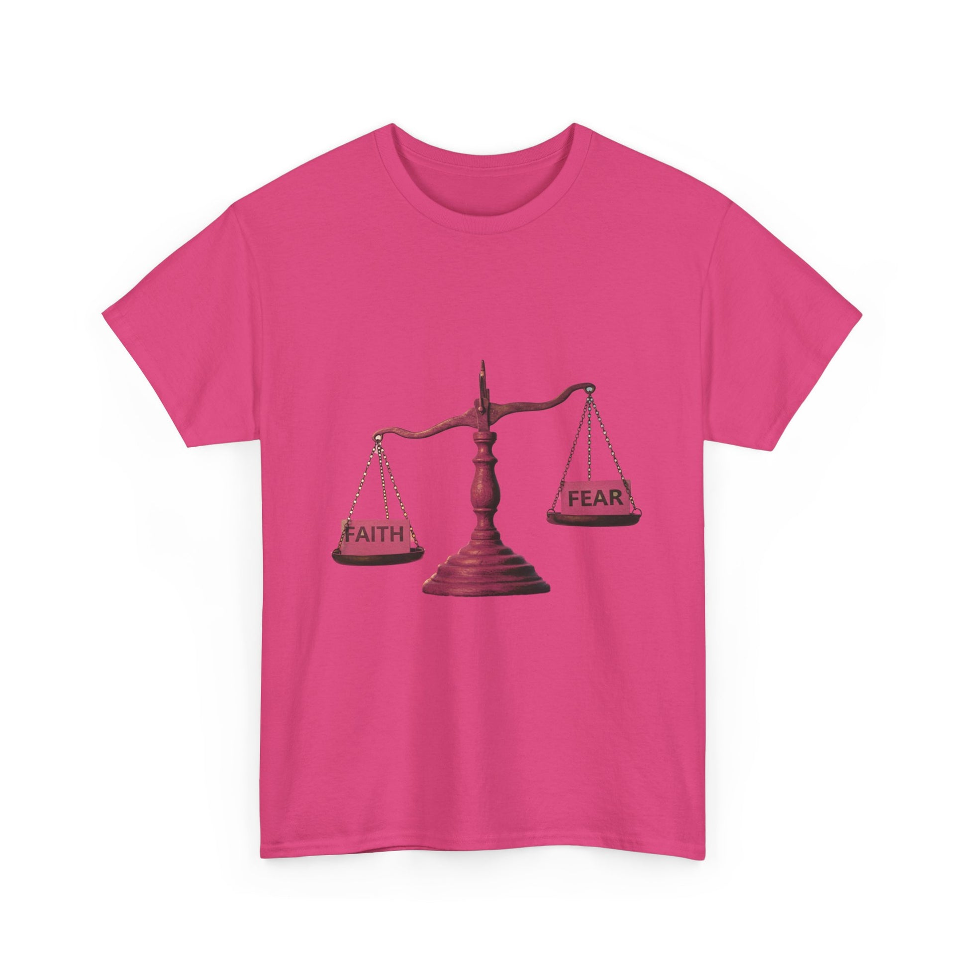 Introducing our Unisex Heavy Cotton Tee, a perfect blend of comfort and style. This shirt embodies a sense of balance and harmony, adorned with a thoughtful design that weighs 'Faith' against 'Fear.' It encourages positivity and resilience, making it a great choice for everyday wear.